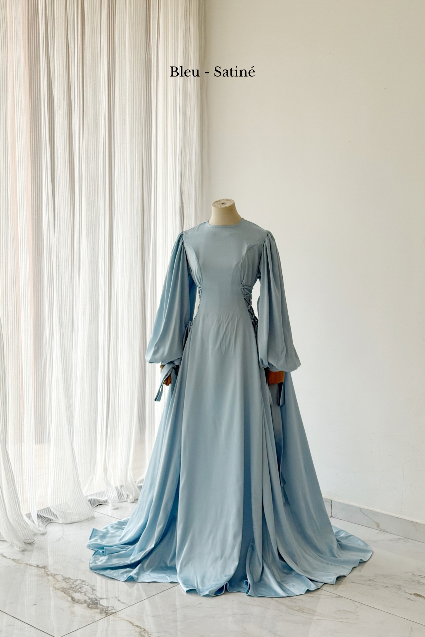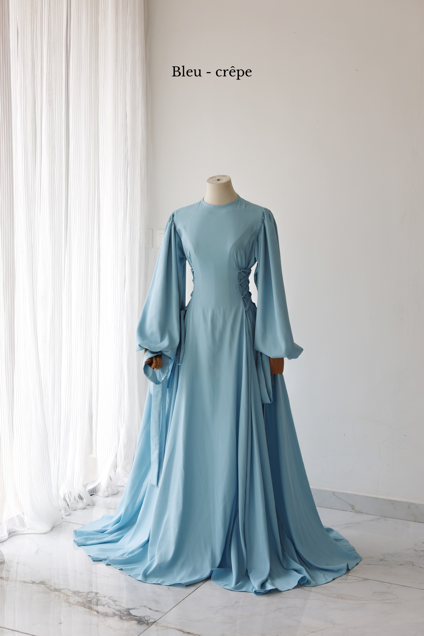 Une robe inspirée des plus belles tenues des princesses de la renaissance : avec ses manches bouffantes à noeuds et son corsage sur les côtés, elle habille de manière coquette et élégante.