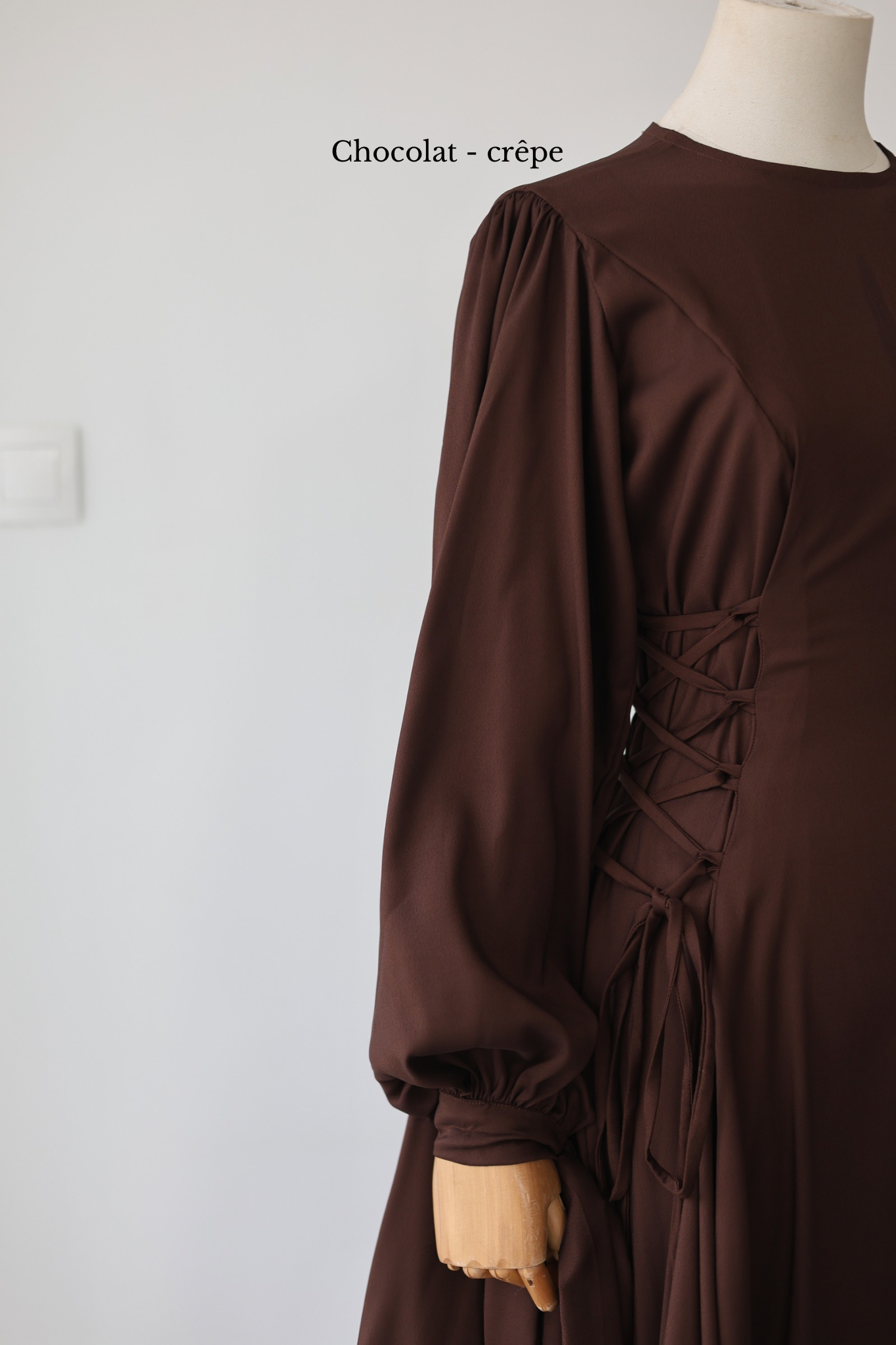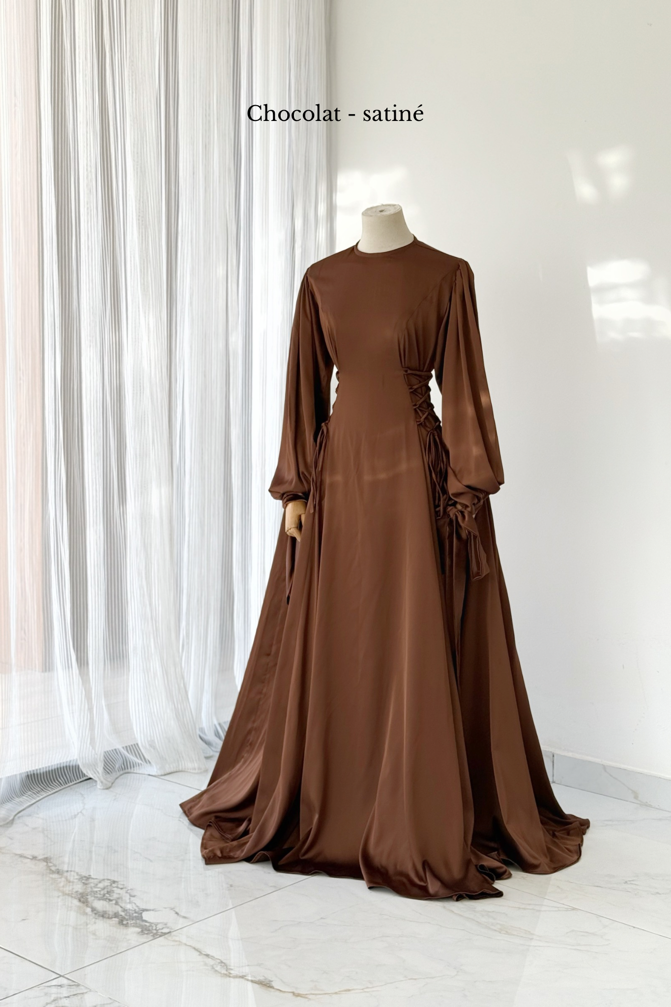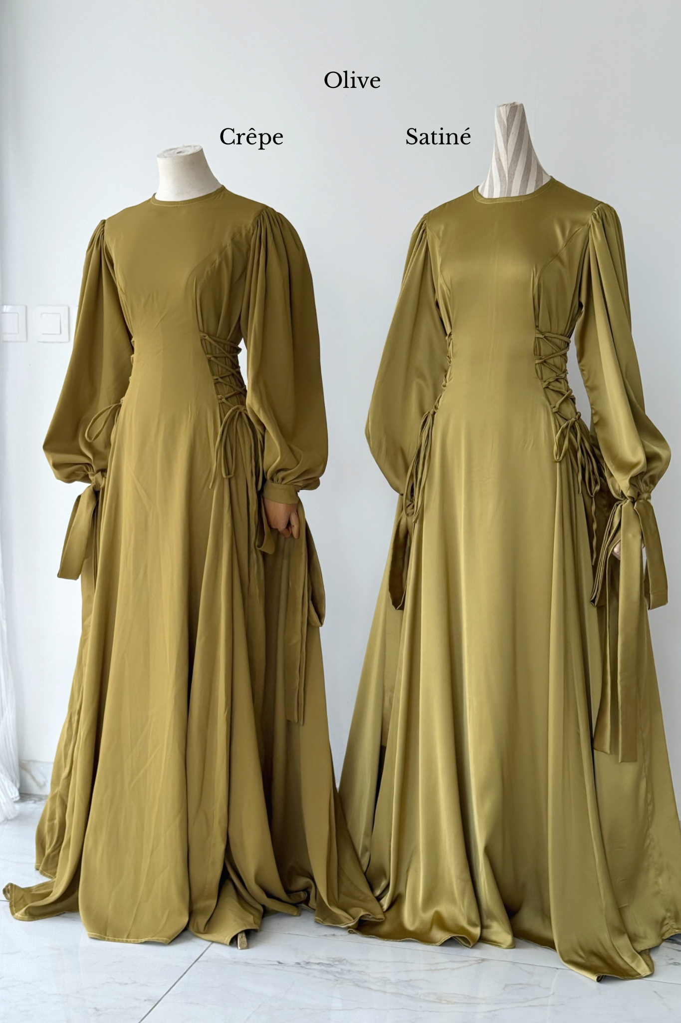 Robe 2 en 1, elle se porte avec corsage complètement relâché en extérieur, et plus resserré entre amies et/ou maharims.